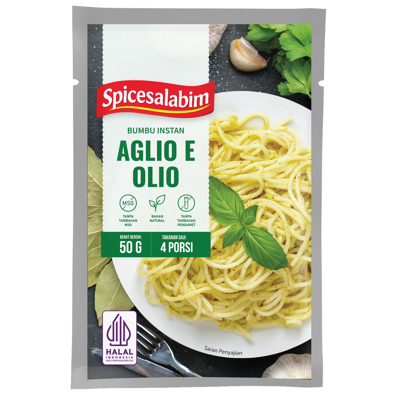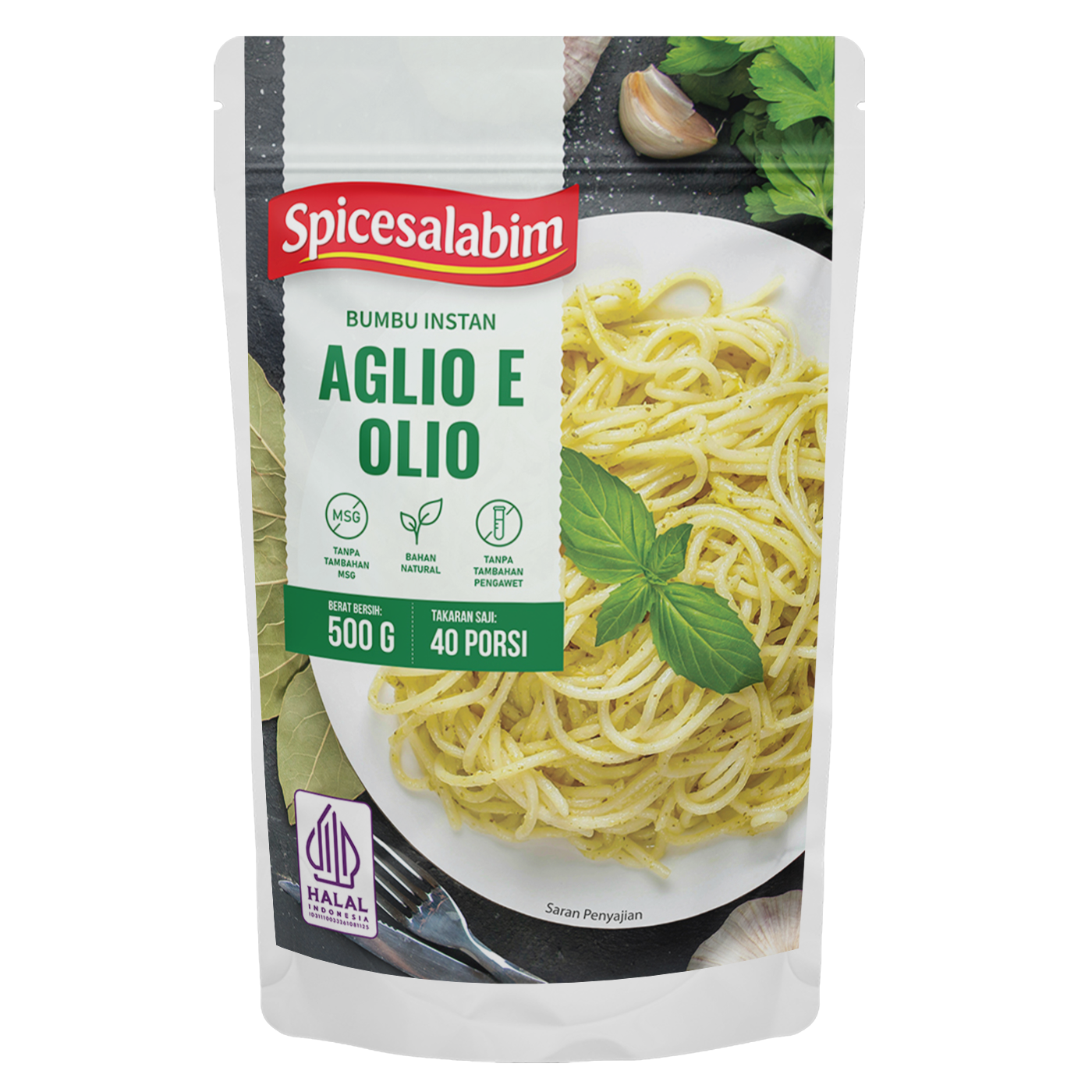 Bumbu Aglio e Olio Spicesalabim, bumbu instan yang diracik khusus buat kamu yang mau masak praktis dengan rempah yang natural. Terbuat dari rempah asli, tanpa tambahan MSG, tanpa pengawet, dan tanpa bahan berbahaya. Cukup satu bumbu untuk bikin masakan gurih, enak, dan sehat.