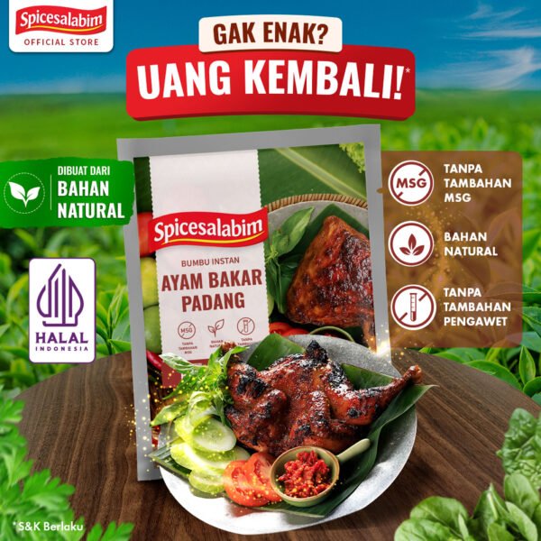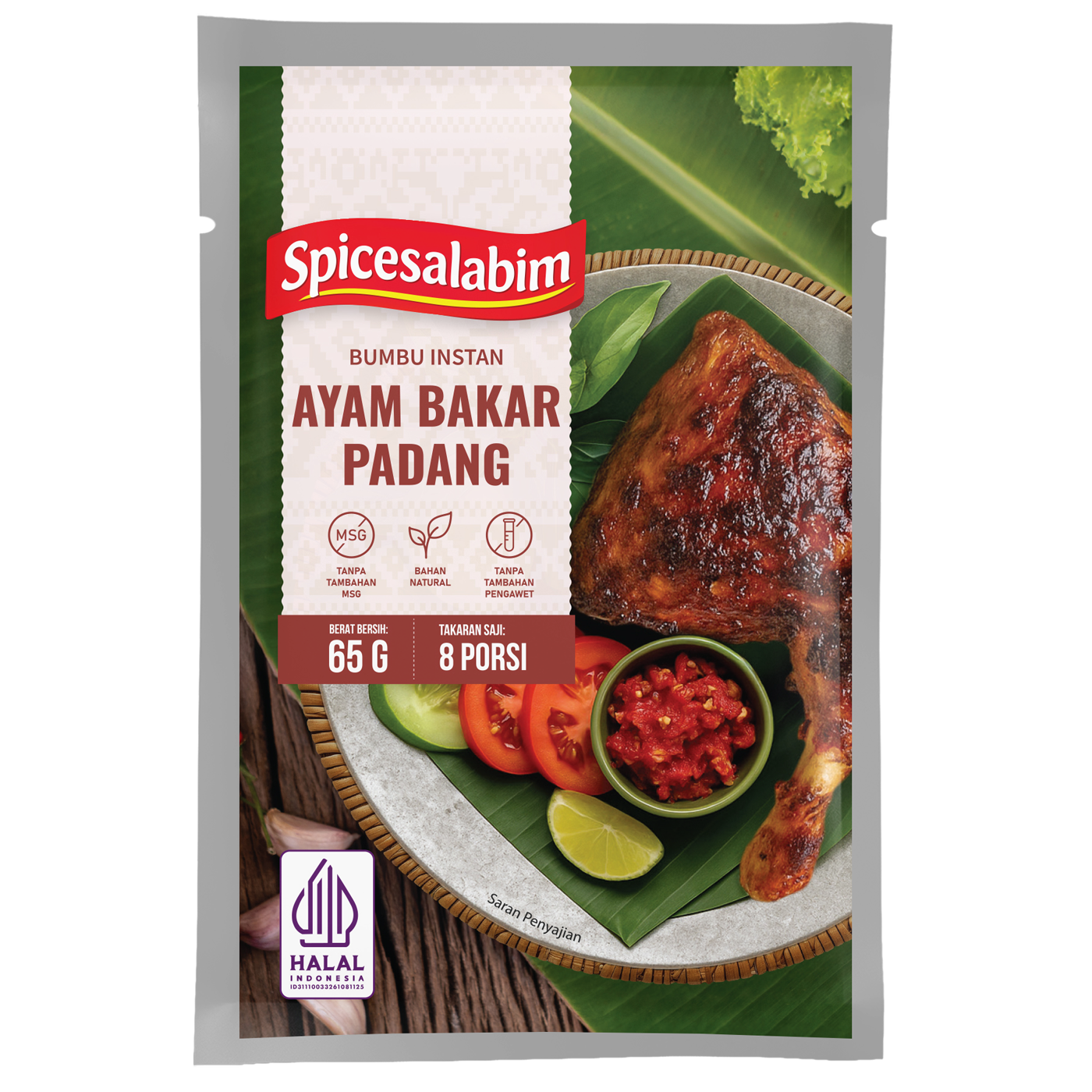Bumbu Ayam Bakar Padang Spicesalabim, bumbu instan yang diracik khusus buat kamu yang mau masak praktis dengan rempah yang natural. Terbuat dari rempah asli, tanpa tambahan MSG, tanpa pengawet, dan tanpa bahan berbahaya. Cukup satu bumbu untuk bikin masakan gurih, enak, dan sehat.