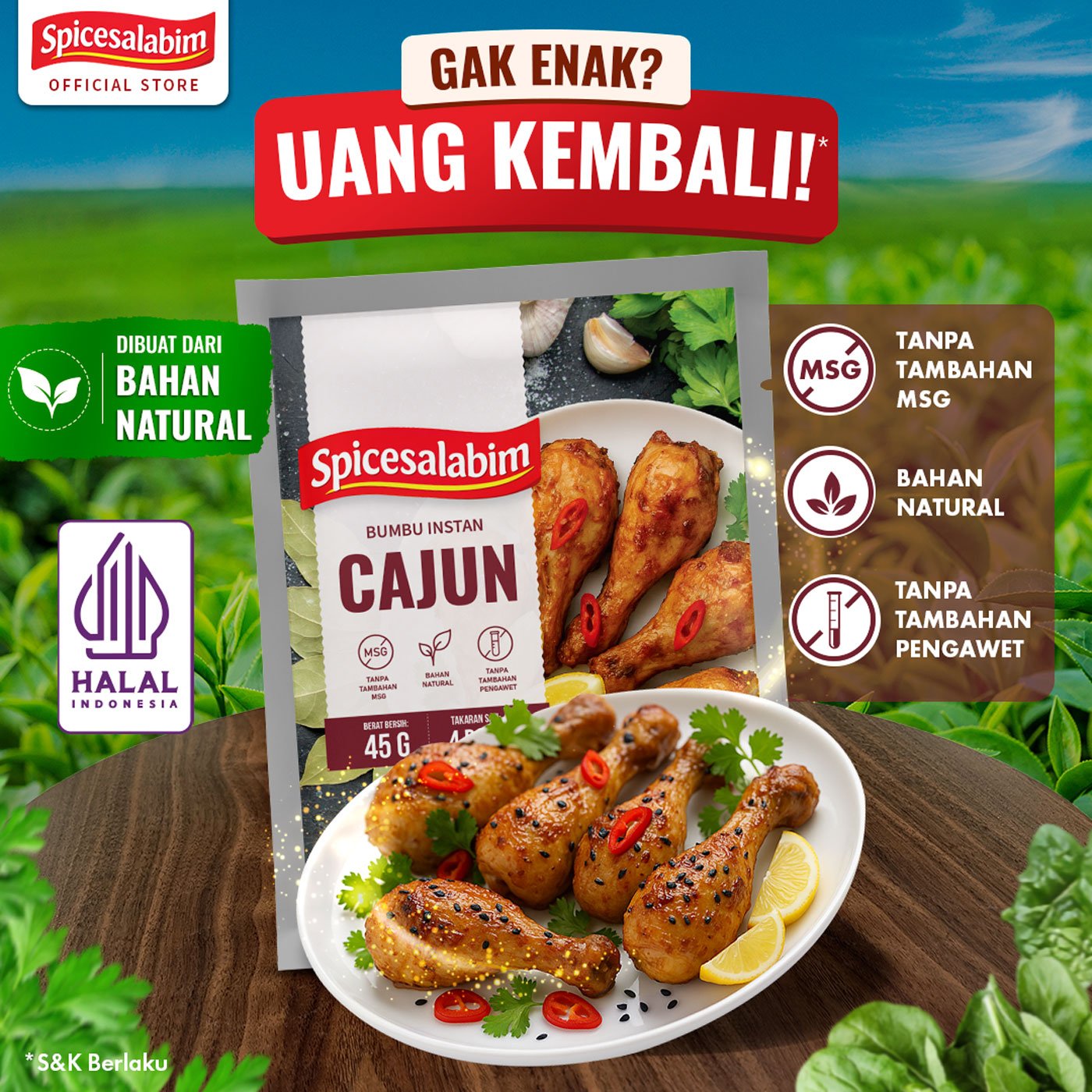 Bumbu Cajun Spicesalabim, bumbu instan yang diracik khusus buat kamu yang mau masak praktis dengan rempah yang natural. Terbuat dari rempah asli, tanpa tambahan MSG, tanpa pengawet, dan tanpa bahan berbahaya. Cukup satu bumbu untuk bikin masakan gurih, enak, dan sehat.