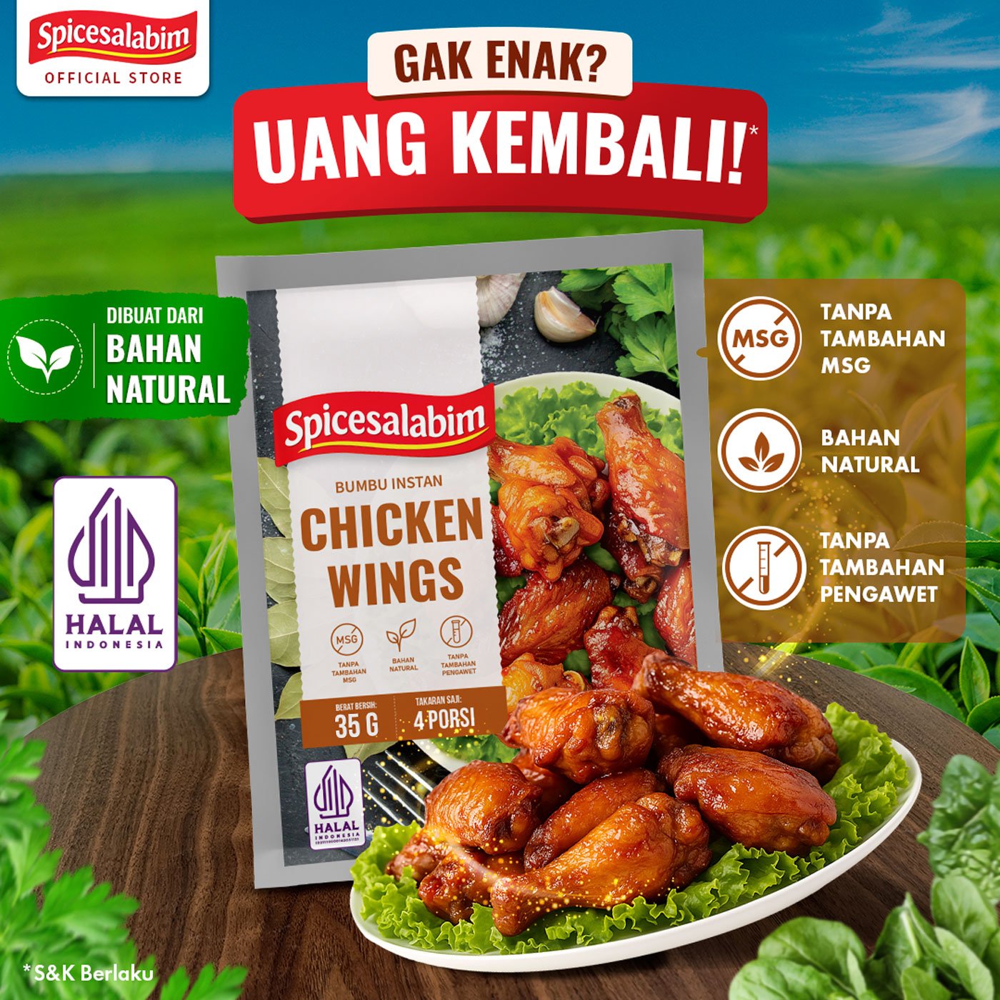 Bumbu Chicken Wings Spicesalabim, bumbu instan yang diracik khusus buat kamu yang mau masak praktis dengan rempah yang natural. Terbuat dari rempah asli, tanpa tambahan MSG, tanpa pengawet, dan tanpa bahan berbahaya. Cukup satu bumbu untuk bikin masakan gurih, enak, dan sehat.