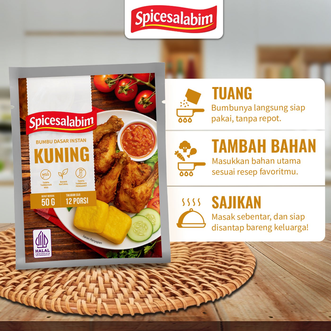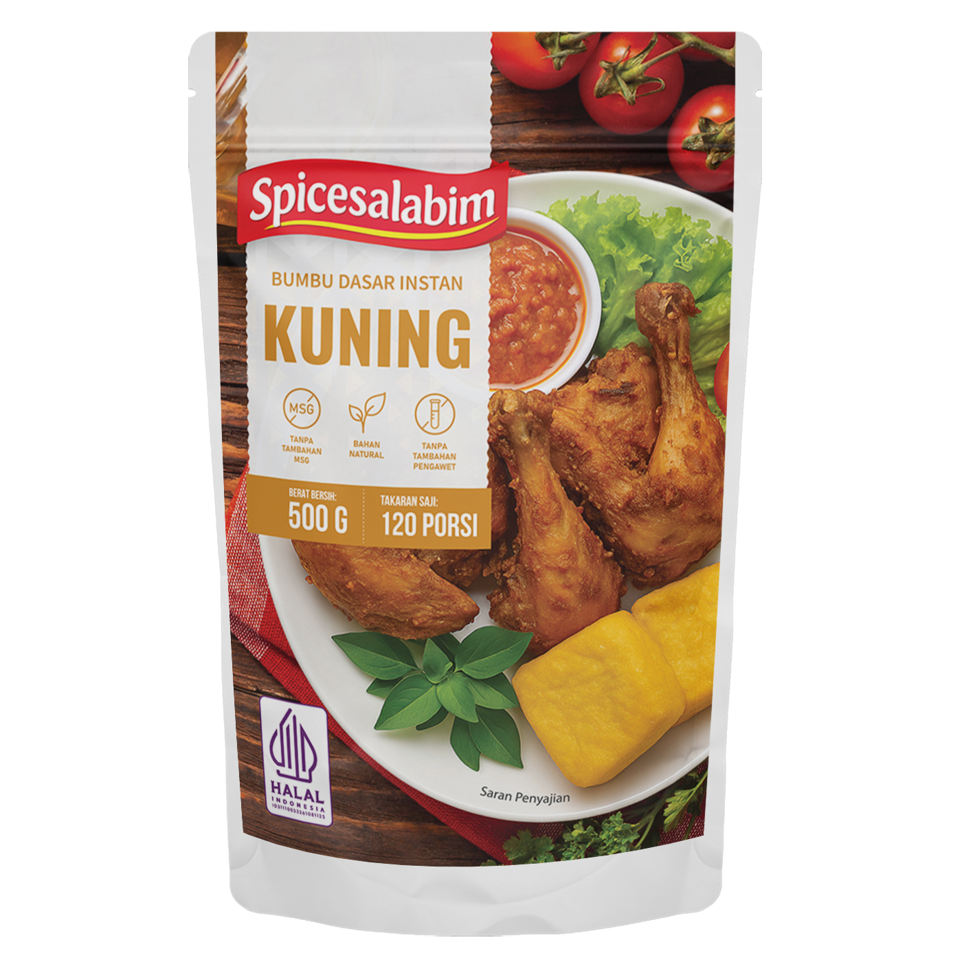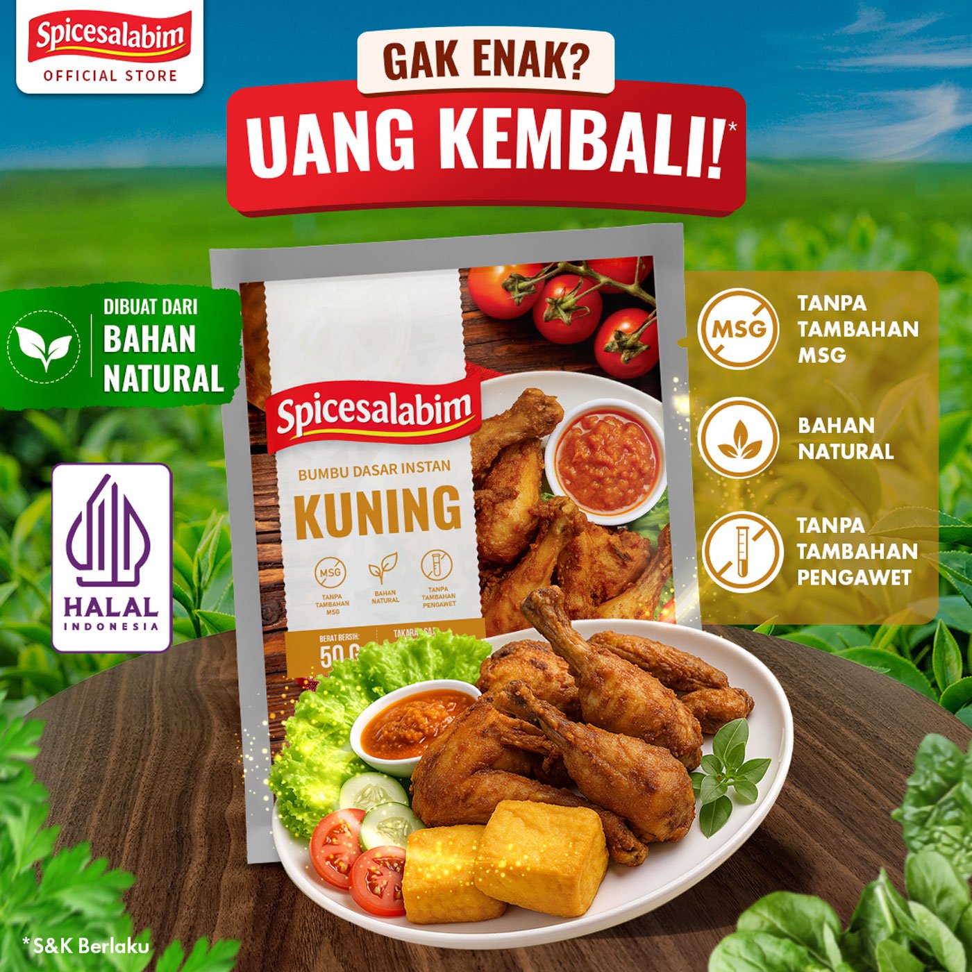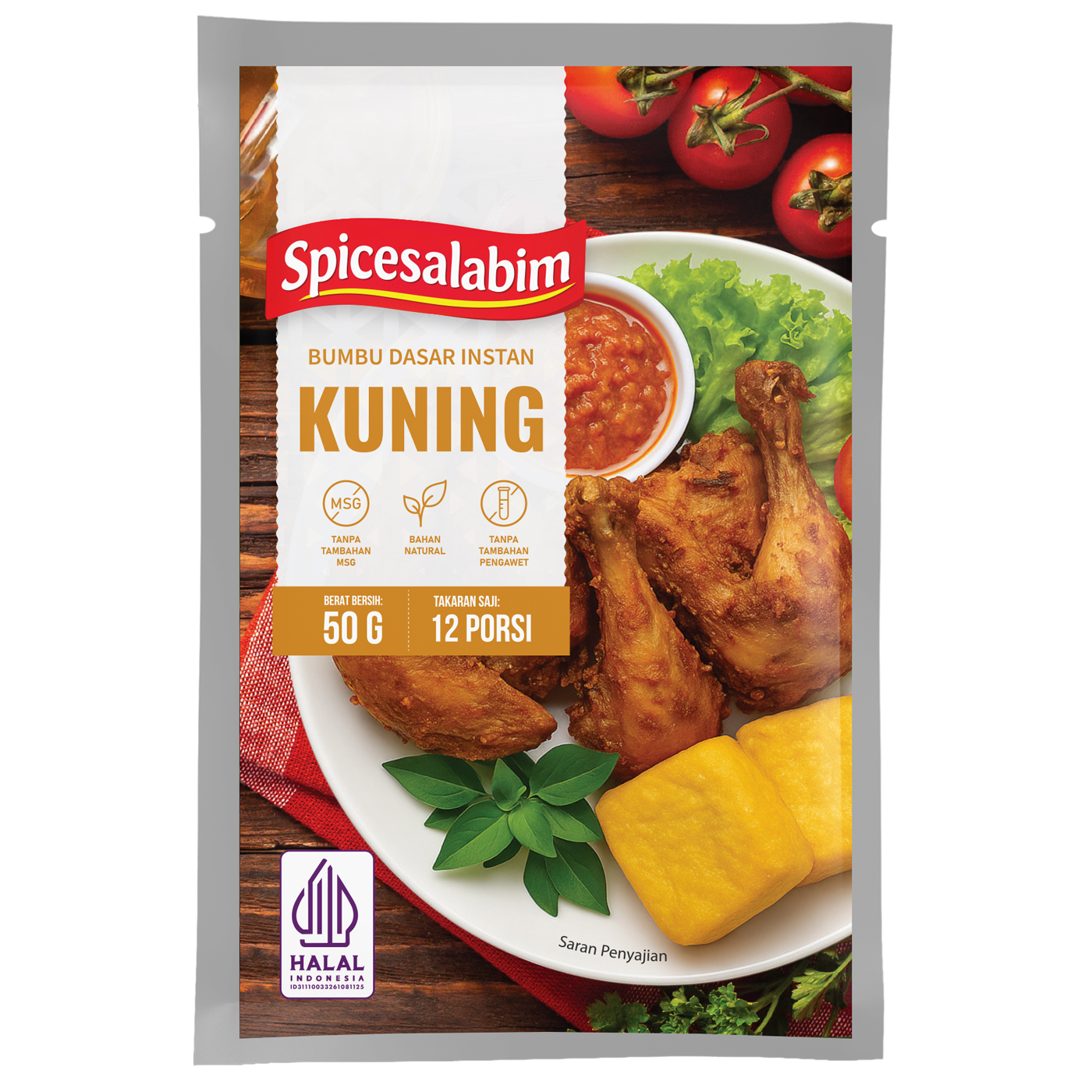 Bumbu Dasar Kuning Spicesalabim, bumbu instan yang diracik khusus buat kamu yang mau masak praktis dengan rempah yang natural. Terbuat dari rempah asli, tanpa tambahan MSG, tanpa pengawet, dan tanpa bahan berbahaya. Cukup satu bumbu untuk bikin masakan gurih, enak, dan sehat.