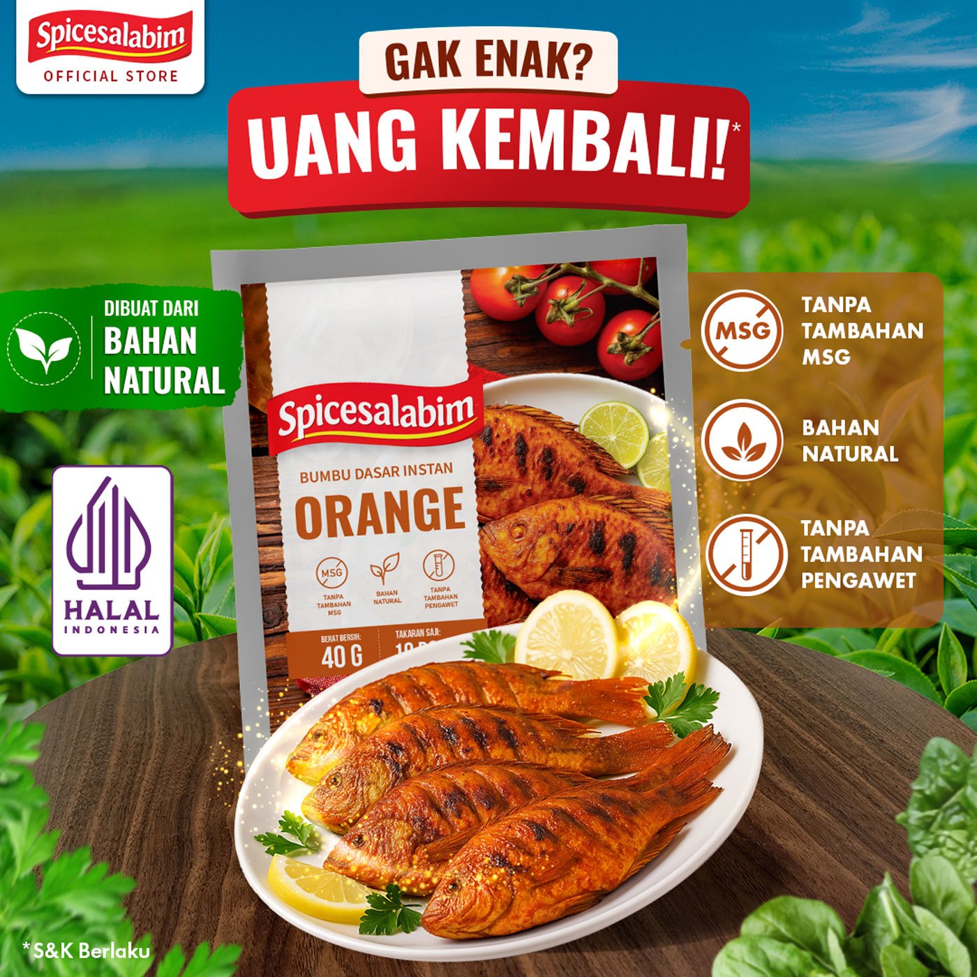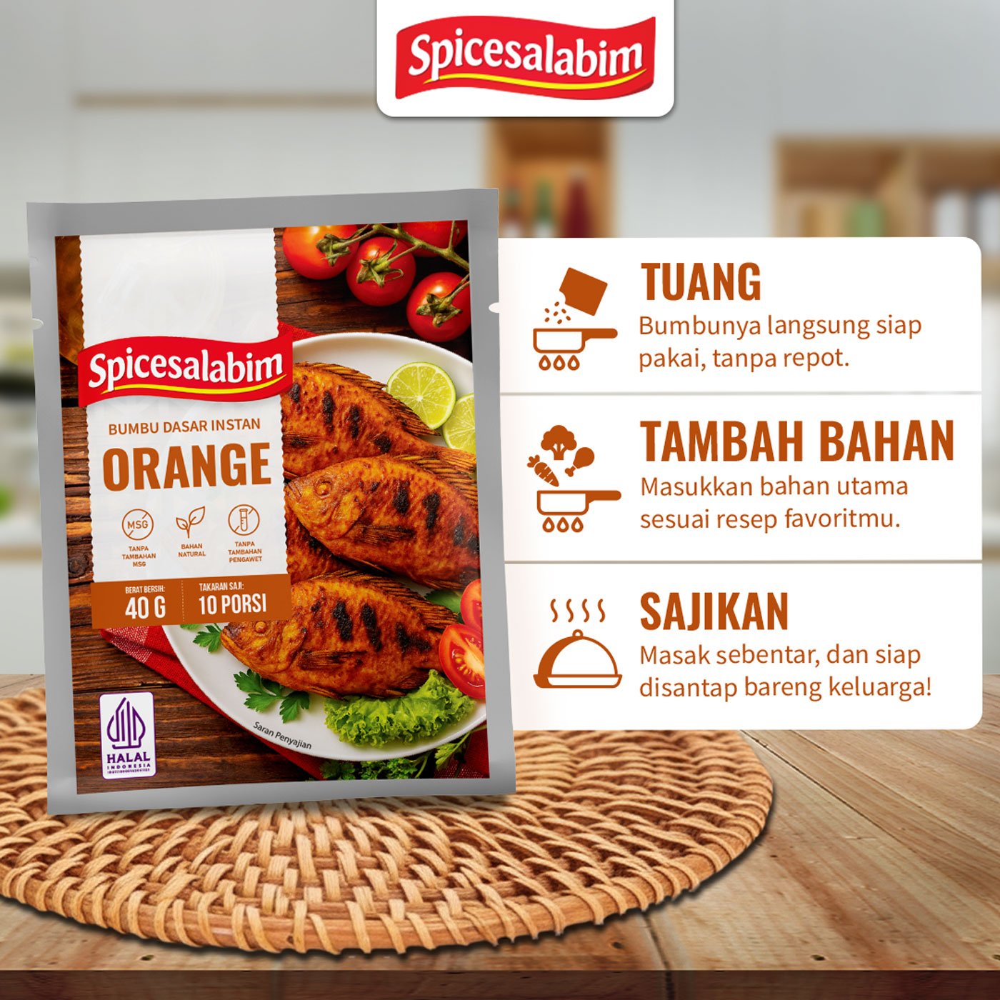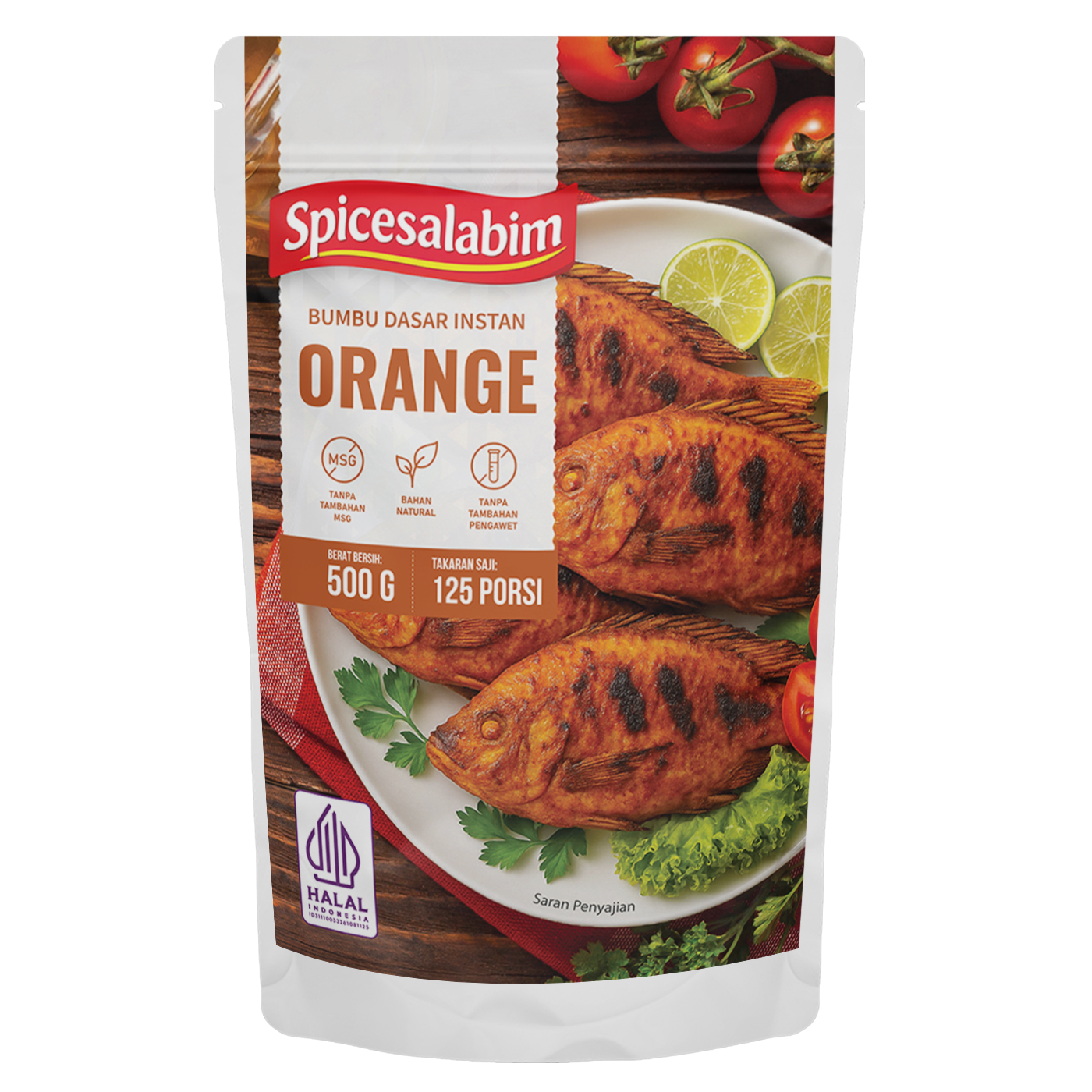 Bumbu Dasar Orange Spicesalabim, bumbu instan yang diracik khusus buat kamu yang mau masak praktis dengan rempah yang natural. Terbuat dari rempah asli, tanpa tambahan MSG, tanpa pengawet, dan tanpa bahan berbahaya. Cukup satu bumbu untuk bikin masakan gurih, enak, dan sehat.