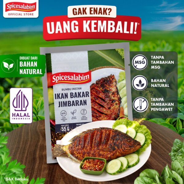 Bumbu Ikan Bakar Jimbaran Spicesalabim, bumbu instan yang diracik khusus buat kamu yang mau masak praktis dengan rempah yang natural. Terbuat dari rempah asli, tanpa tambahan MSG, tanpa pengawet, dan tanpa bahan berbahaya. Cukup satu bumbu untuk bikin masakan gurih, enak, dan sehat.