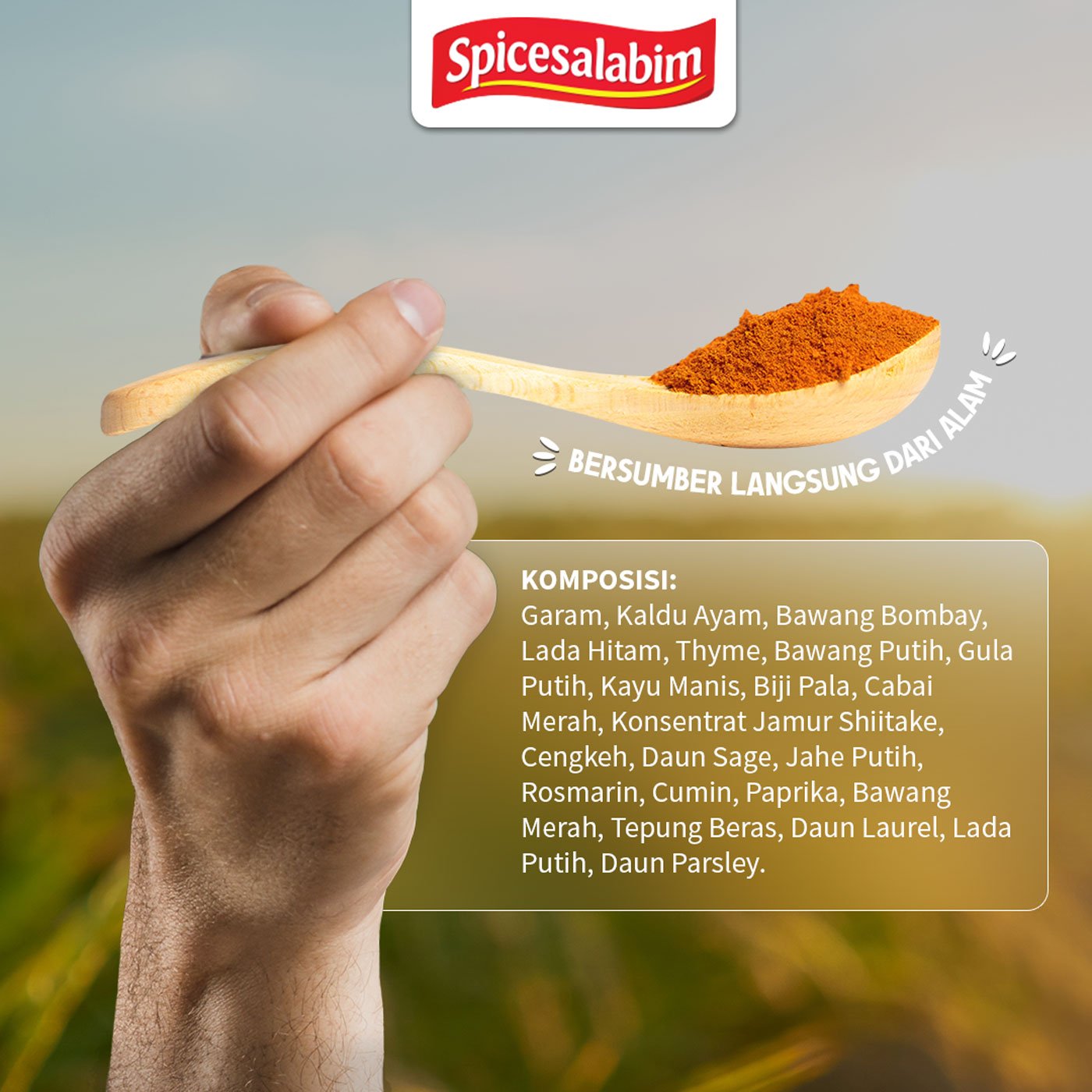 Spicesalabim diracik dari bahan-bahan natural dan tidak menggunakan tambahan MSG dan pengawet buatan dalam formulanya.