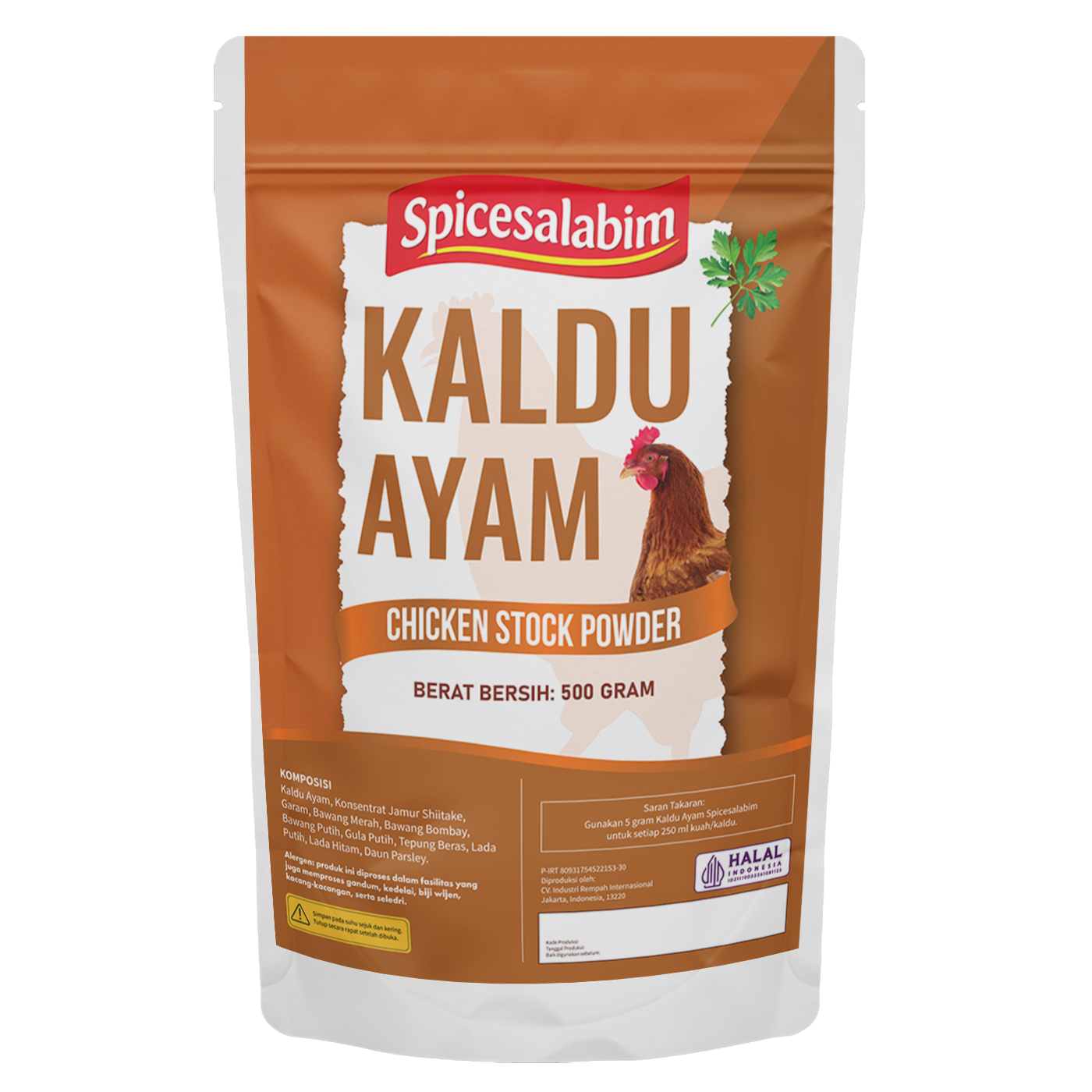 – Komposisi Bumbu Kaldu Ayam Spicesalabim – Kaldu Ayam, Konsentrat Jamur Shiitake, Garam, Bawang Merah, Bawang Bombay, Bawang Putih, Gula Putih, Tepung Beras, Lada Putih, Lada Hitam, Daun Parsley