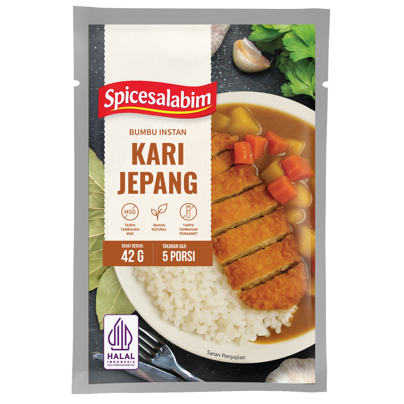 Bumbu Kari Jepang Spicesalabim, bumbu instan yang diracik khusus buat kamu yang mau masak praktis dengan rempah yang natural. Terbuat dari rempah asli, tanpa tambahan MSG, tanpa pengawet, dan tanpa bahan berbahaya. Cukup satu bumbu untuk bikin masakan gurih, enak, dan sehat.