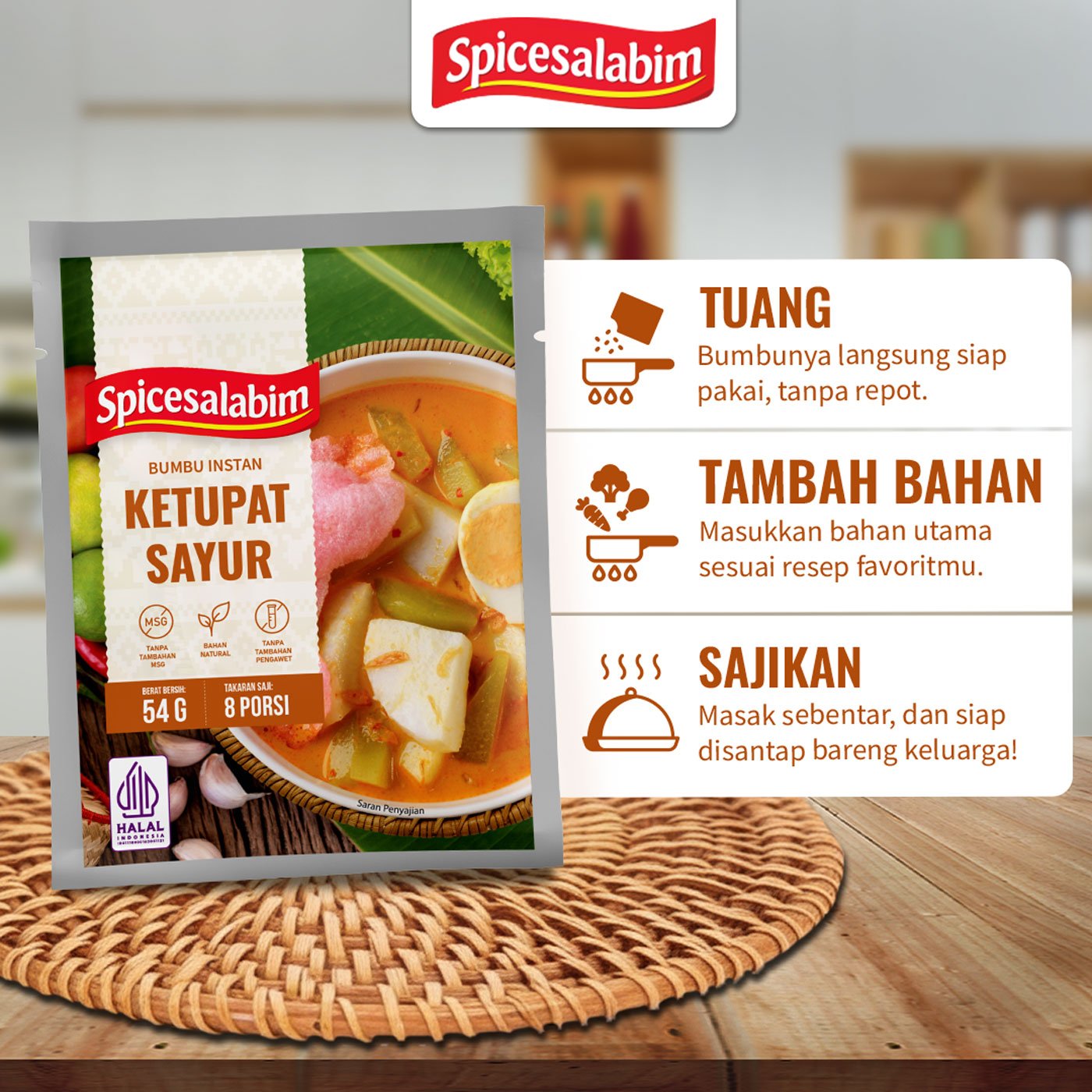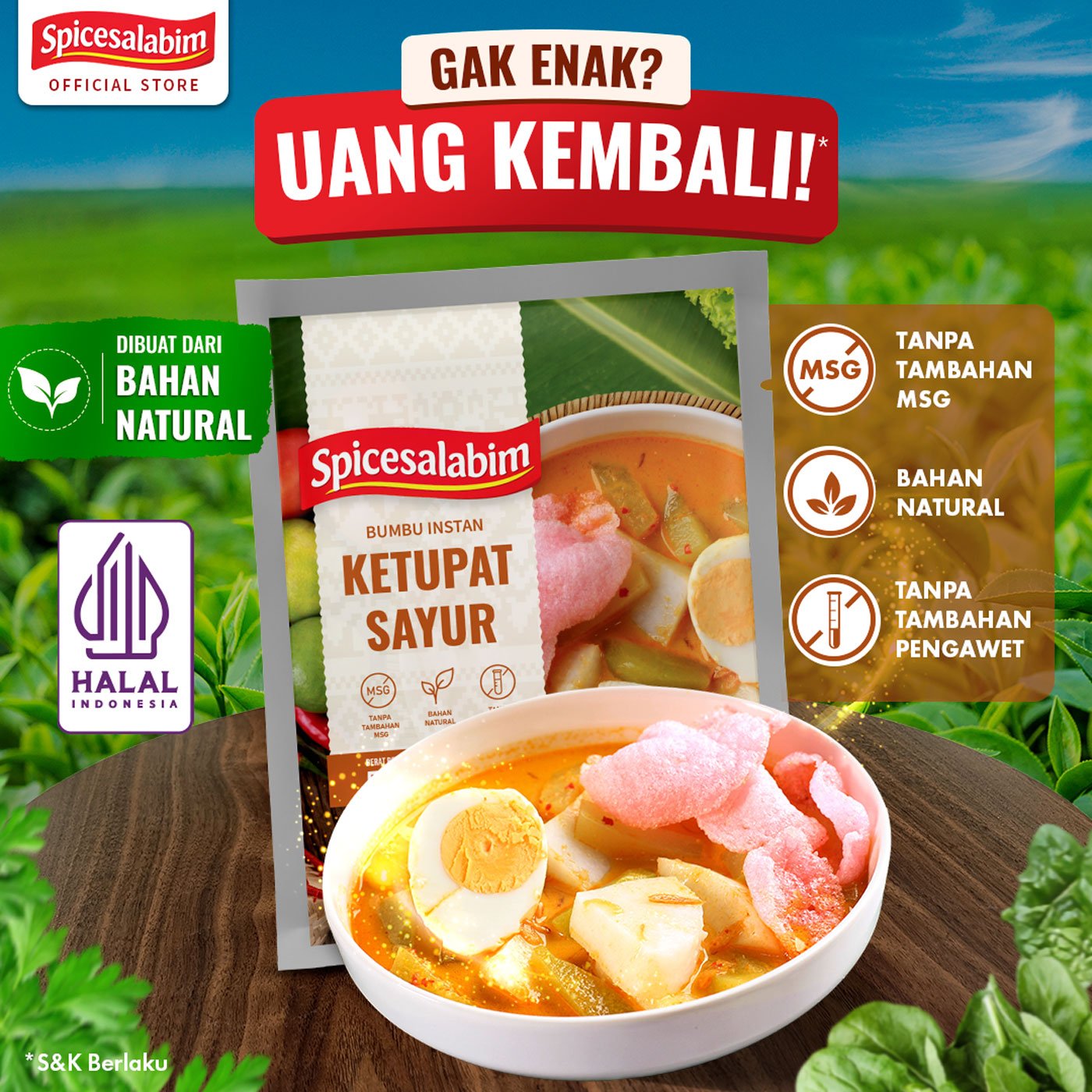Bumbu Ketupat Sayur Spicesalabim, bumbu instan yang diracik khusus buat kamu yang mau masak praktis dengan rempah yang natural. Terbuat dari rempah asli, tanpa tambahan MSG, tanpa pengawet, dan tanpa bahan berbahaya. Cukup satu bumbu untuk bikin masakan gurih, enak, dan sehat.