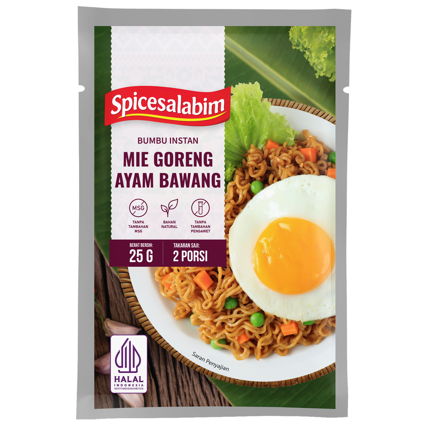 Bumbu Mie Goreng Ayam Bawang Spicesalabim, bumbu instan yang diracik khusus buat kamu yang mau masak praktis dengan rempah yang natural. Terbuat dari rempah asli, tanpa tambahan MSG, tanpa pengawet, dan tanpa bahan berbahaya. Cukup satu bumbu untuk bikin masakan gurih, enak, dan sehat.