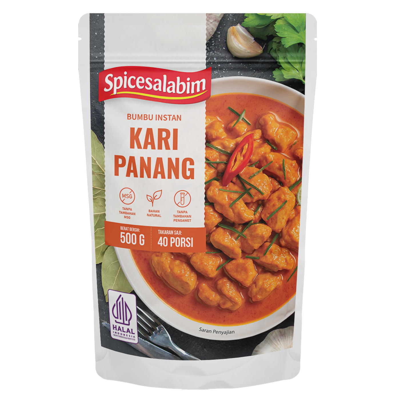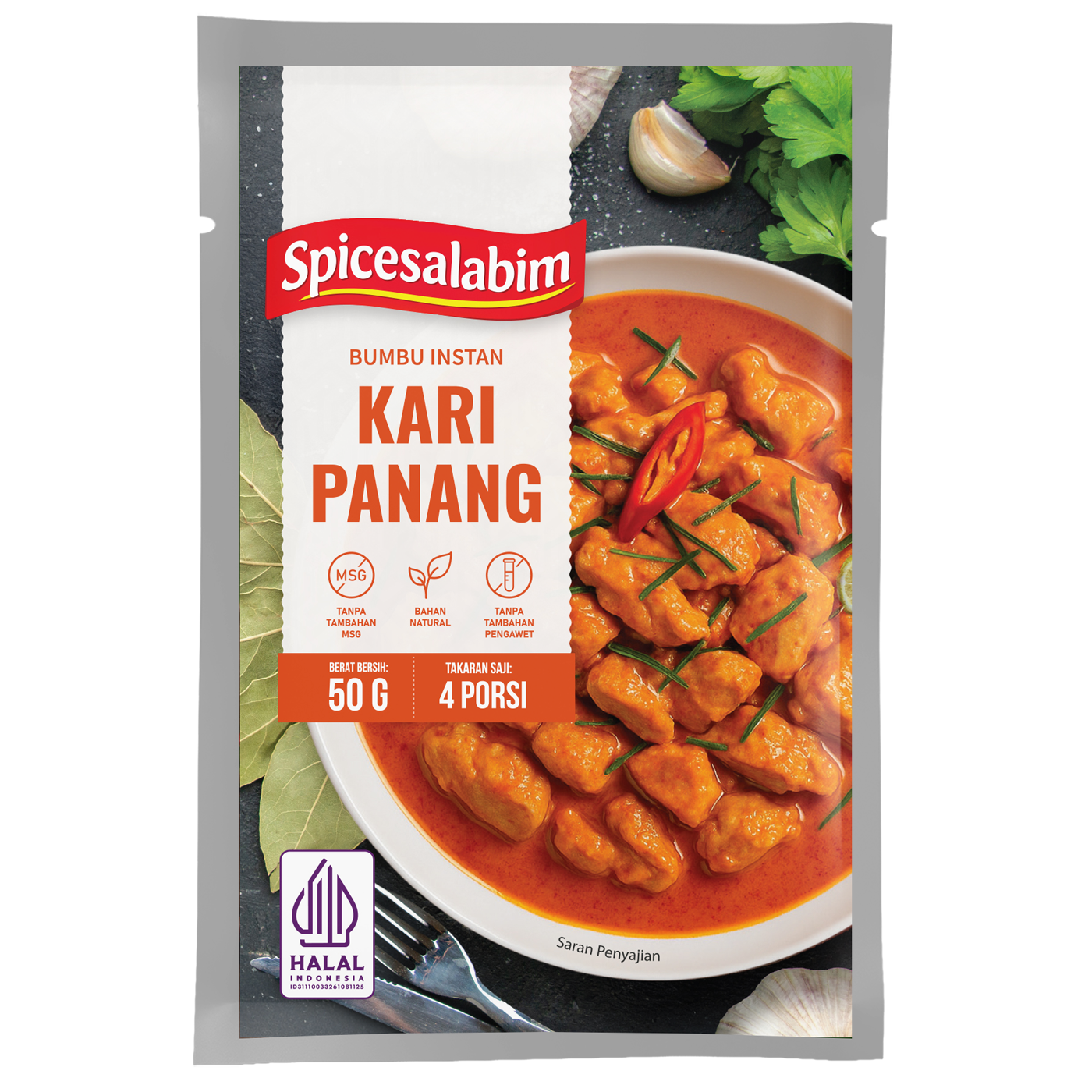 Bumbu Panang Curry Spicesalabim, bumbu instan yang diracik khusus buat kamu yang mau masak praktis dengan rempah yang natural. Terbuat dari rempah asli, tanpa tambahan MSG, tanpa pengawet, dan tanpa bahan berbahaya. Cukup satu bumbu untuk bikin masakan gurih, enak, dan sehat.