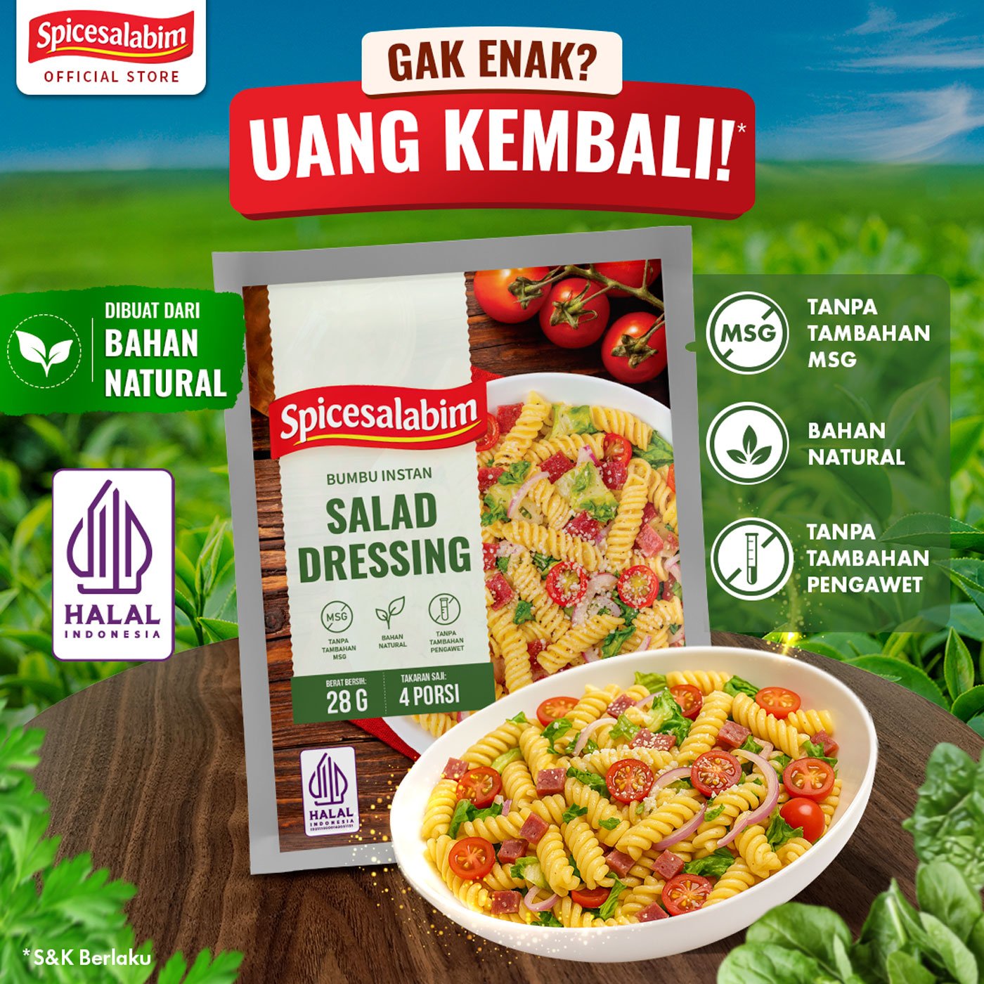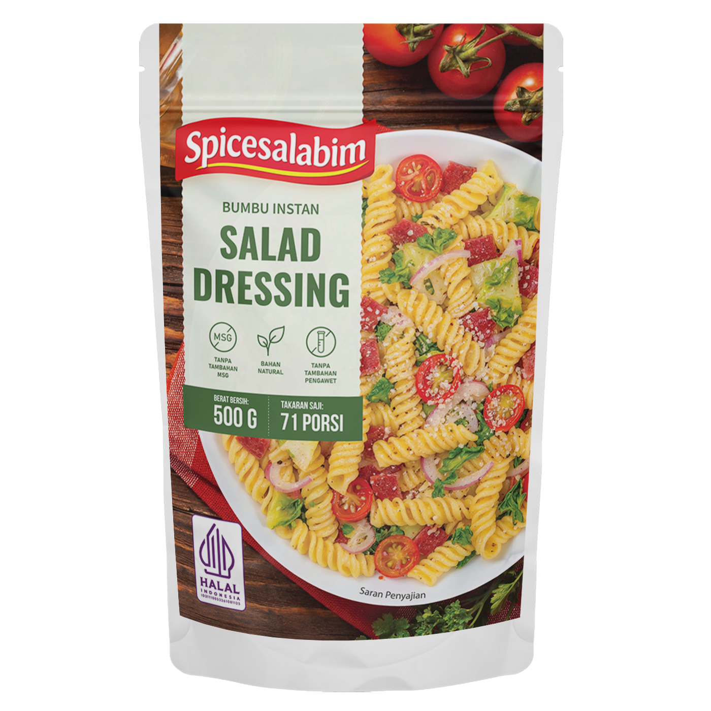 Bumbu Salad Dressing Spicesalabim, bumbu instan yang diracik khusus buat kamu yang mau masak praktis dengan rempah yang natural. Terbuat dari rempah asli, tanpa tambahan MSG, tanpa pengawet, dan tanpa bahan berbahaya. Cukup satu bumbu untuk bikin masakan gurih, enak, dan sehat.