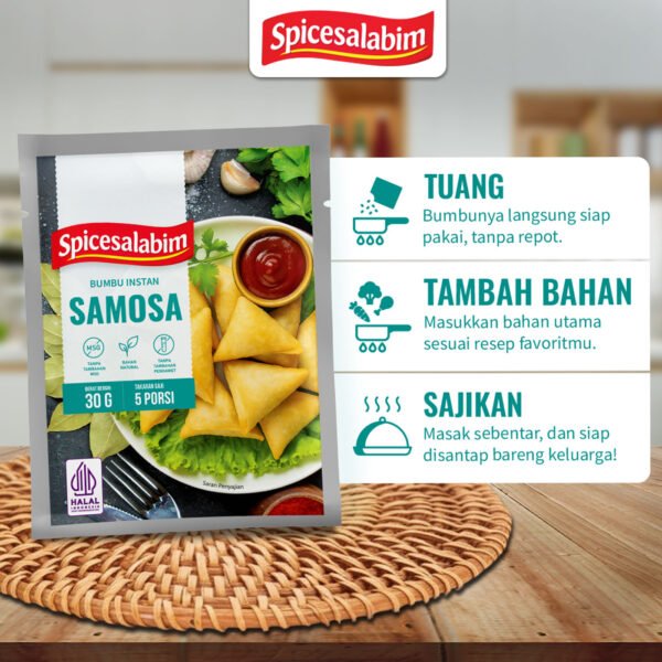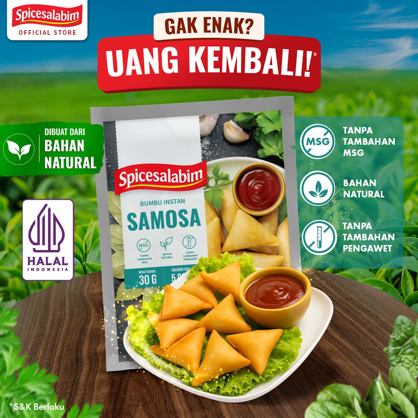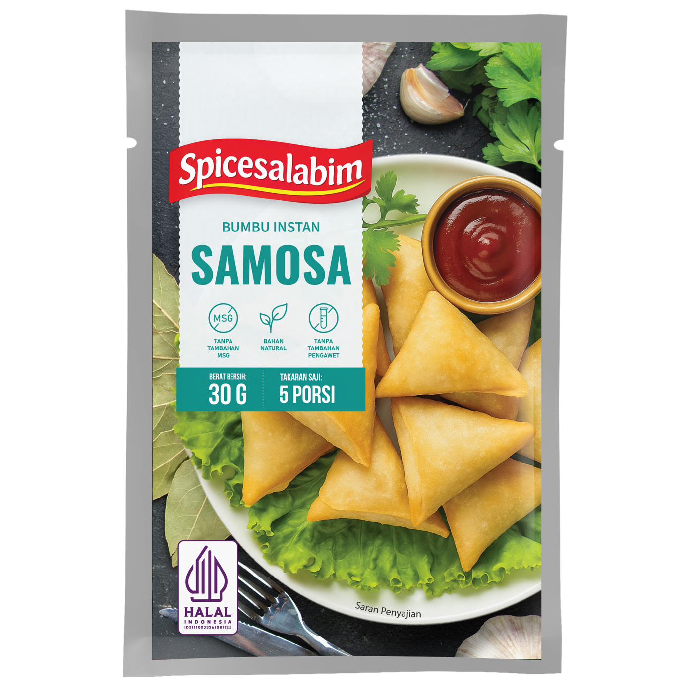 Bumbu Samosa Spicesalabim, bumbu instan yang diracik khusus buat kamu yang mau masak praktis dengan rempah yang natural. Terbuat dari rempah asli, tanpa tambahan MSG, tanpa pengawet, dan tanpa bahan berbahaya. Cukup satu bumbu untuk bikin masakan gurih, enak, dan sehat.