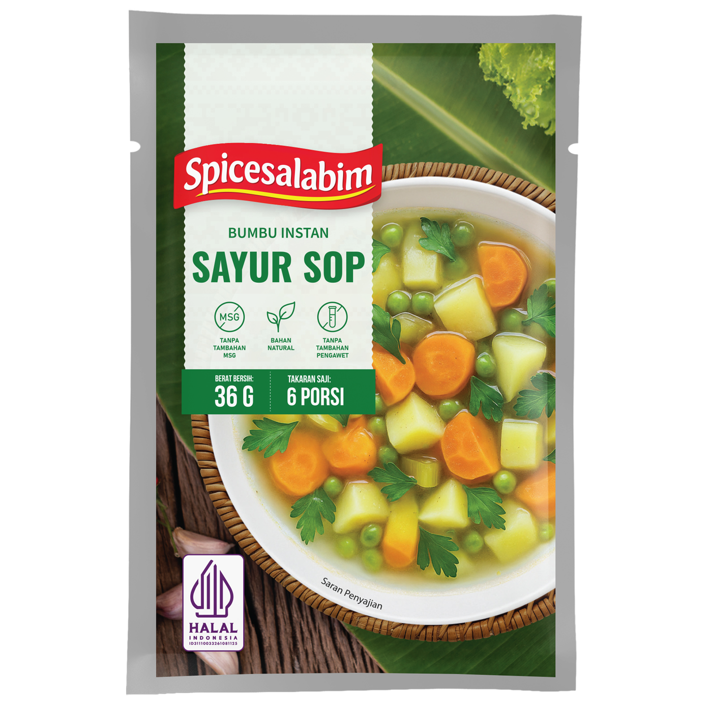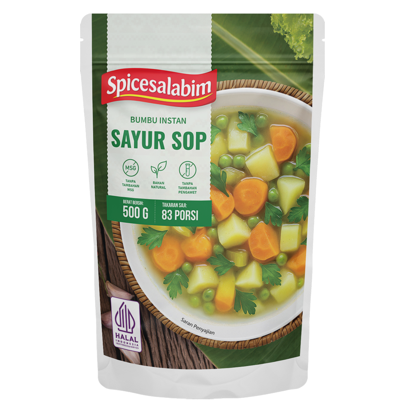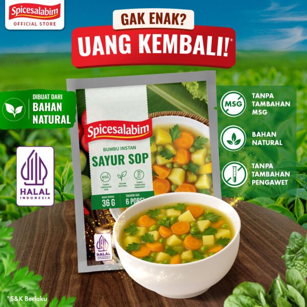Bumbu Sayur Sop Spicesalabim, bumbu instan yang diracik khusus buat kamu yang mau masak praktis dengan rempah yang natural. Terbuat dari rempah asli, tanpa tambahan MSG, tanpa pengawet, dan tanpa bahan berbahaya. Cukup satu bumbu untuk bikin masakan gurih, enak, dan sehat.