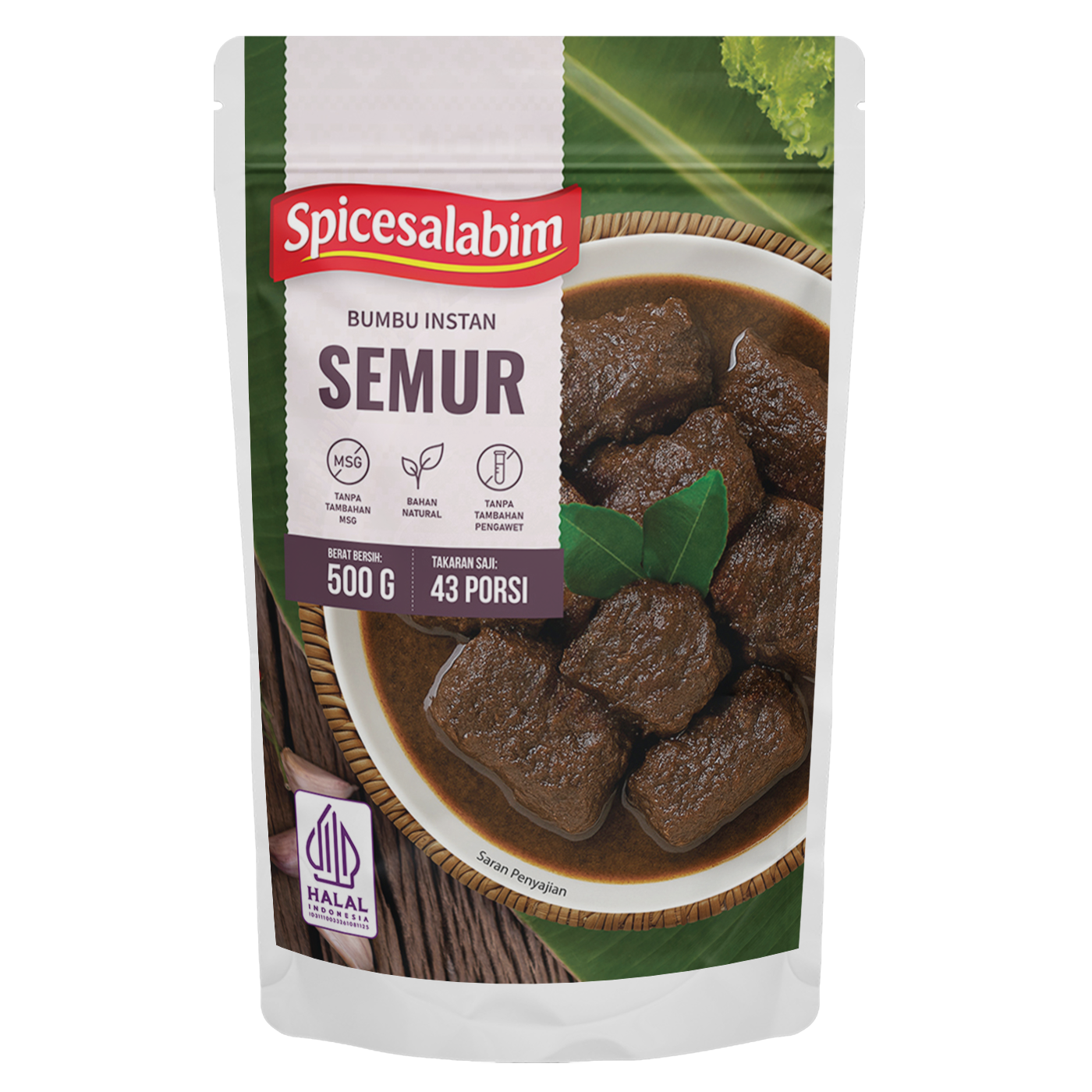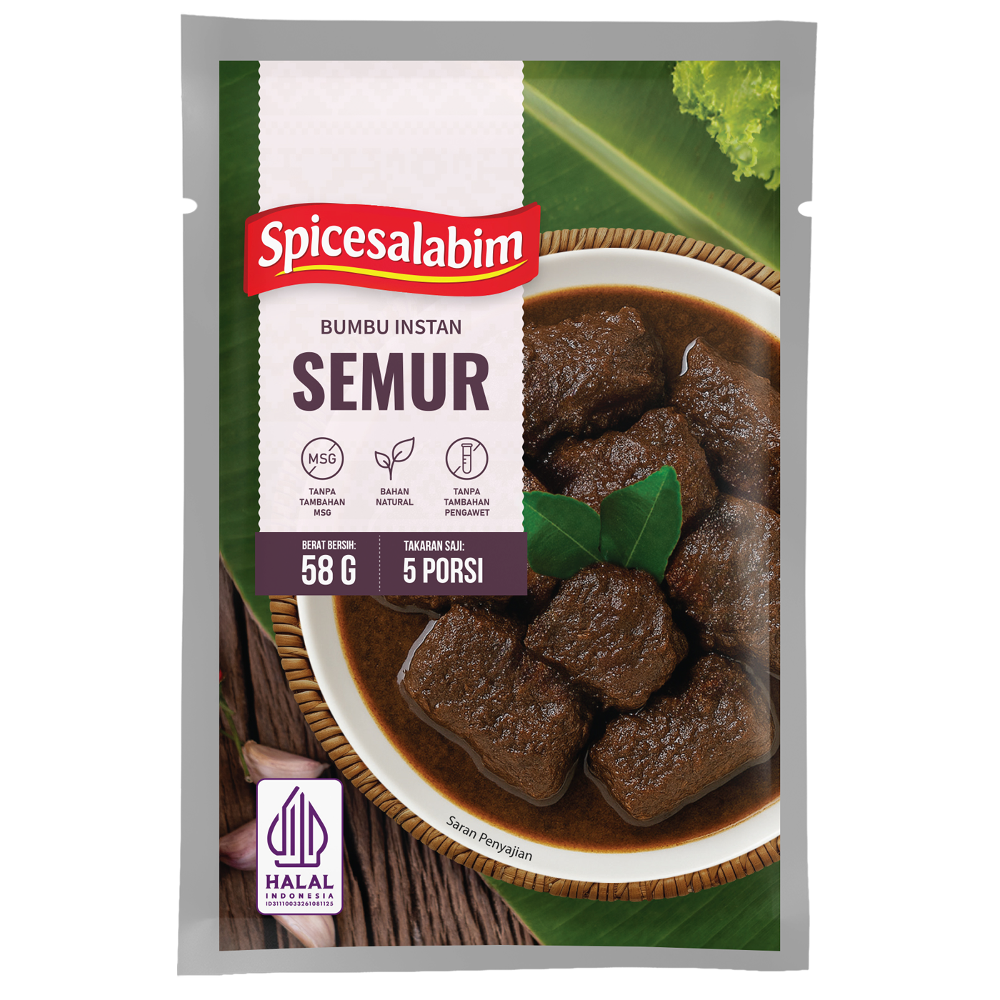 Bumbu Semur Spicesalabim, bumbu instan yang diracik khusus buat kamu yang mau masak praktis dengan rempah yang natural. Terbuat dari rempah asli, tanpa tambahan MSG, tanpa pengawet, dan tanpa bahan berbahaya. Cukup satu bumbu untuk bikin masakan gurih, enak, dan sehat.