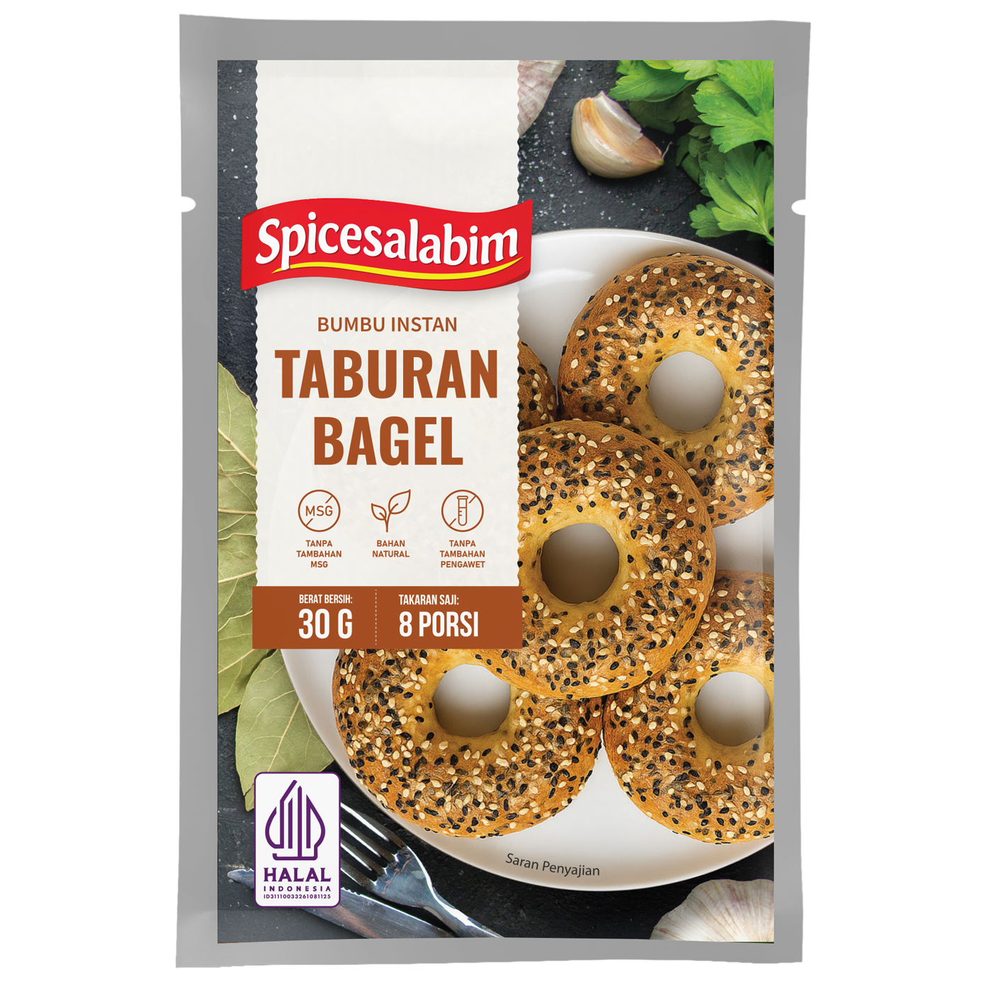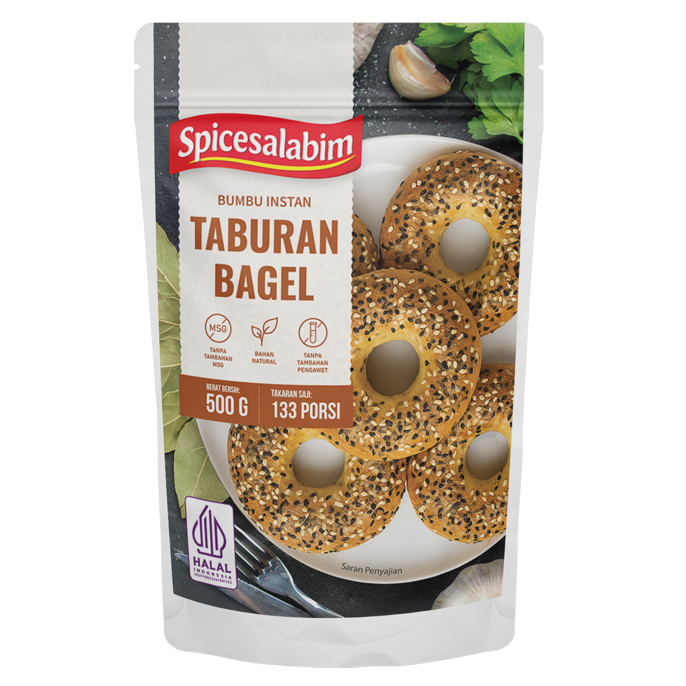 Bumbu Taburan Bagel Spicesalabim, bumbu instan yang diracik khusus buat kamu yang mau masak praktis dengan rempah yang natural. Terbuat dari rempah asli, tanpa tambahan MSG, tanpa pengawet, dan tanpa bahan berbahaya. Cukup satu bumbu untuk bikin masakan gurih, enak, dan sehat.