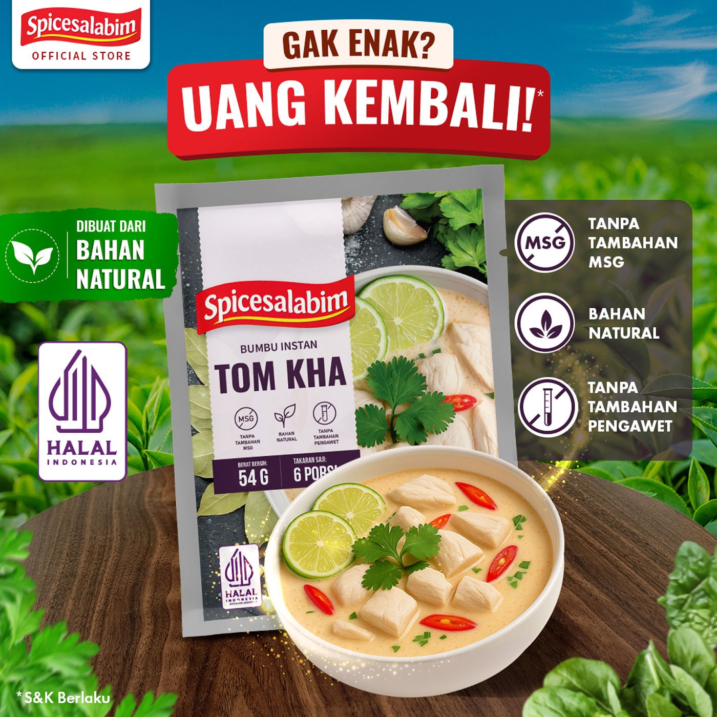 Bumbu Tom Kha Spicesalabim, bumbu instan yang diracik khusus buat kamu yang mau masak praktis dengan rempah yang natural. Terbuat dari rempah asli, tanpa tambahan MSG, tanpa pengawet, dan tanpa bahan berbahaya. Cukup satu bumbu untuk bikin masakan gurih, enak, dan sehat.